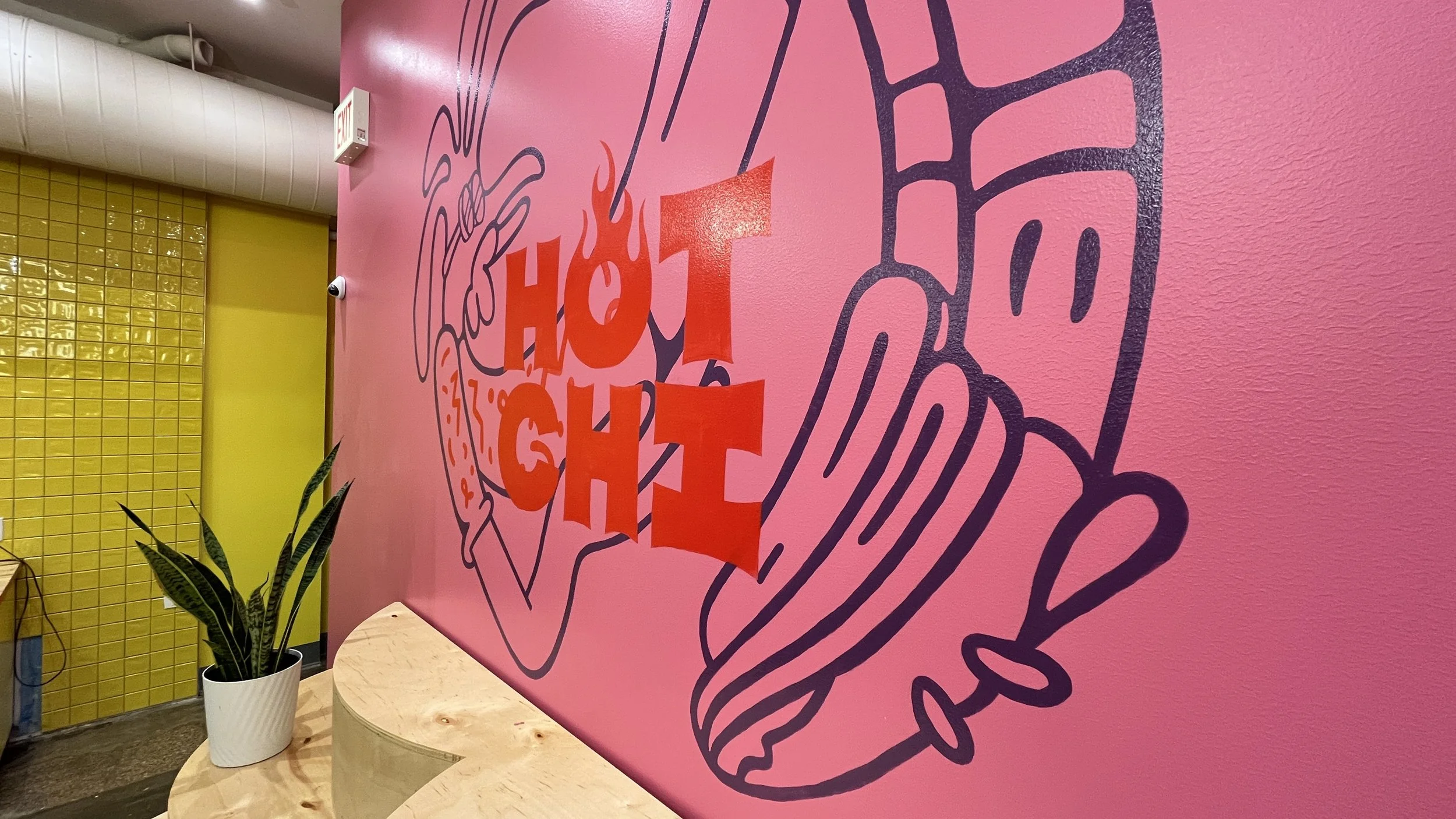 Hand Painted Mural and signage at HOTCHI in the lakeview Chicago area